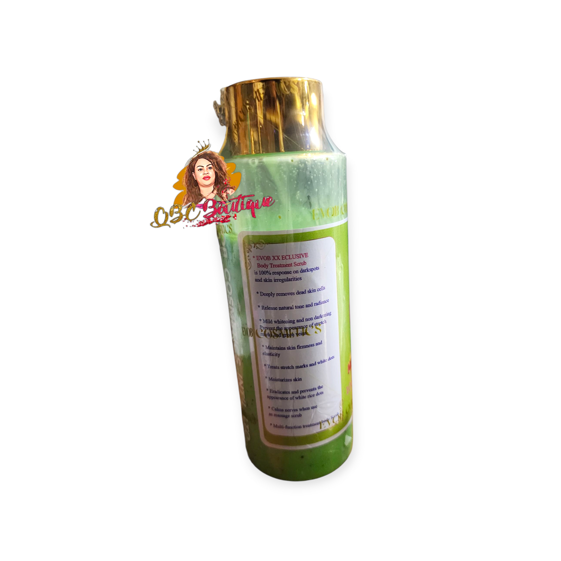No Limit Evob XX exclusive Body Scrub effectively targets spots and uneven skin. It exfoliates deeply to remove dead skin cells, revealing your skin’s natural glow and a more even complexion. This scrub helps prevent stretch marks, spider veins, and white spots while enhancing skin firmness and elasticity. Experience moisturized, revitalized skin after just one use. How to use: Massage onto damp skin after showering in circular motions, leave on for 3 minutes, then rinse thoroughly. For best results, use once or twice weekly.