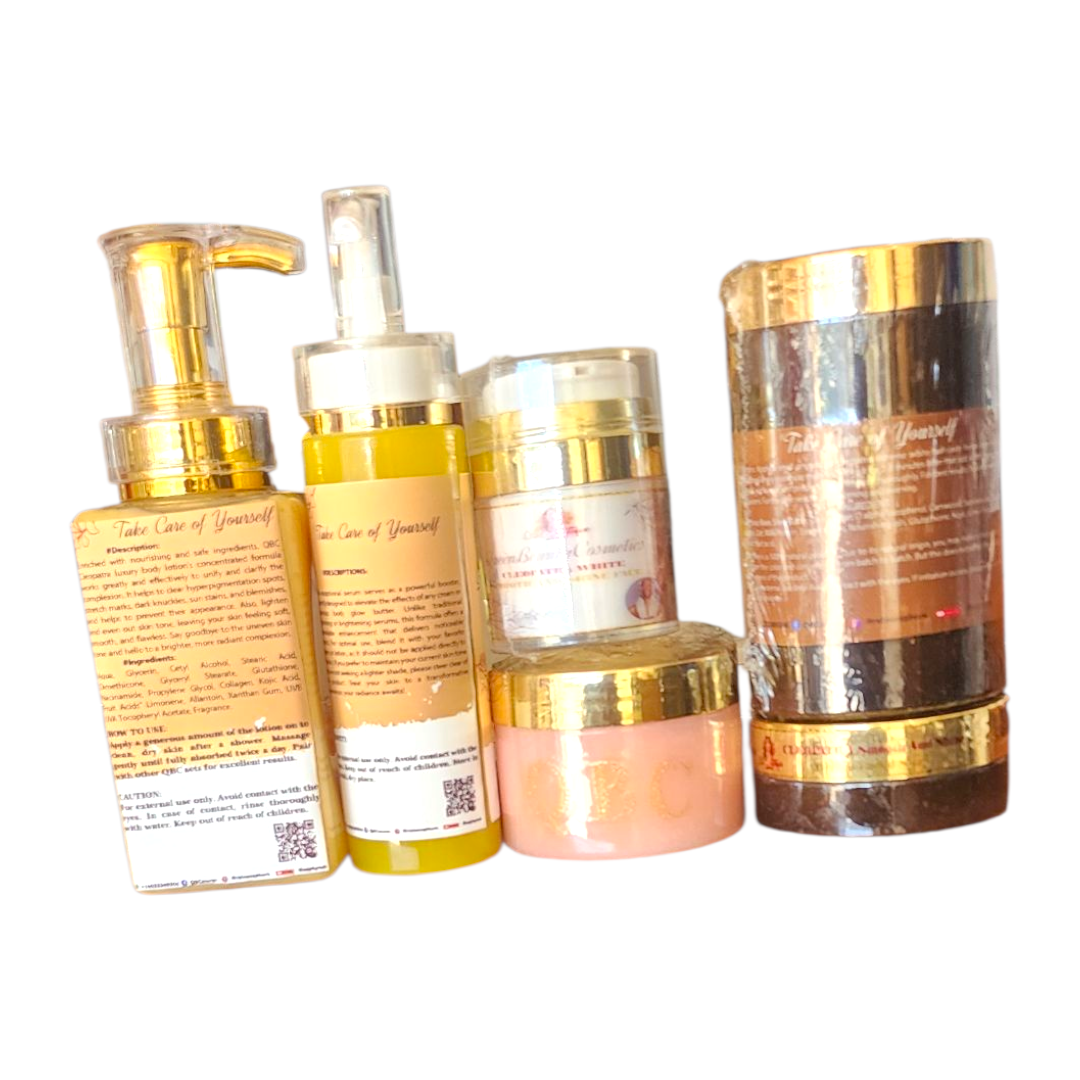 Unlock the true potential of your skin with our top-selling skincare set, featuring the powerful half-cast black soap, your go-to solution for flawless skin! This exceptional soap eliminates skin imperfections and guarantees an even skin tone. Don’t settle for less; elevate your skincare routine with our effective facial black soap, exfoliating scrub, revitalizing facial cream, luxurious body lotion, and the game-changing Extreme White Booster Serum. If you’re determined to achieve a radiant, spotless complexion, this set is exactly what you need!